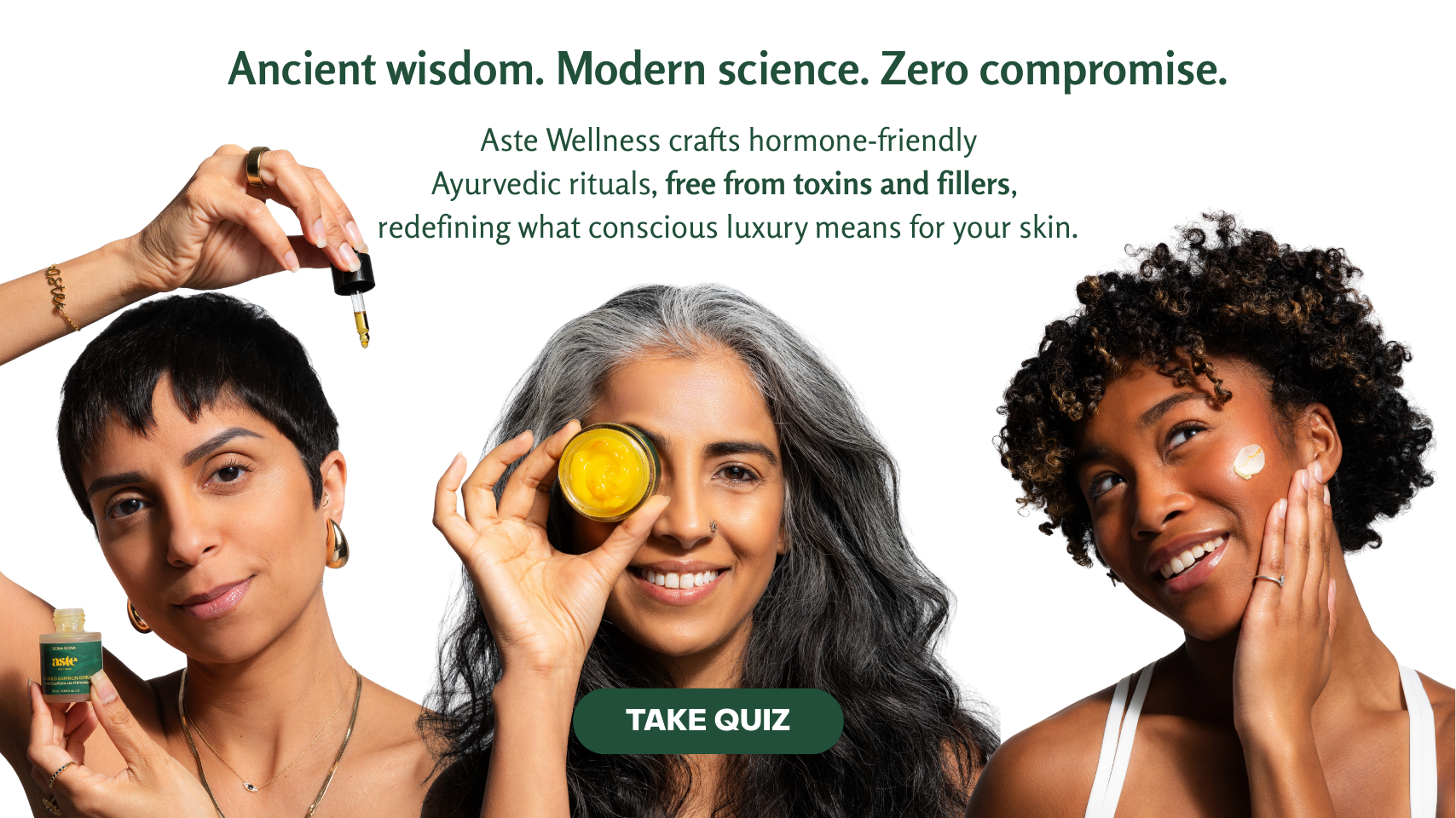 We started Aste Wellness because we wanted what didn’t exist: skincare that could honour our hormones, our heritage, and our whole selves. As two women of colour — one a scientist, the other an artist — we came together through our own struggles with imbalance. Ayurveda gave us back our rhythm, our radiance, and our rituals.