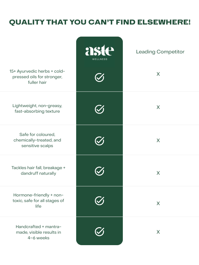 It features Ayurvedic ingredients like amla, brahmi, neem, and shatavari, which help nourish the scalp, strengthen roots, and promote healthy hair growth naturally.
